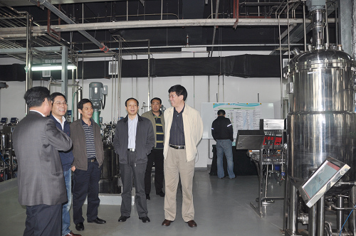 在天津工生所所长刘新厚等的陪同下,施尔畏参观了结构生物学与蛋白酶学、系统与合成生物技术、微生物代谢工程等实验室,看望了科研骨干,详细了解研究所在X光晶体结构技术、生物代谢、生物发酵、工业酶制剂等领域的科研进展情况以及设备情况;随后,参观了研究所GMP车间和发酵模拟与仿真平台,了解了建设及设备的运行情况。此外,还实地考察了育成中心各个分中心的工作进展情况。