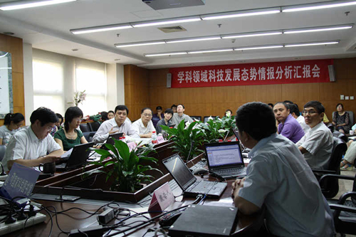 听取汇报后,潘教峰发表了讲话。他指出,从此次的科技发展态势战略情报分析汇报来看,各情报团队的学科领域科技发展态势监测与分析的质量明显提高,各情报团队都监测和分析出了相关领域科技发展的重要新进展和新趋势,有些团队还十分重视研究方法和分析框架的建立并形成了清晰的逻辑思路,战略情报研究工作有了很大进步。他强调指出,在数据密集型科研范式的兴起背景下,战略情报研究工作正是数据密集型的科研活动。战略情报研究更是一个知识发现的过程,是基于海量数据开展知识发现。对此,要在认识上切实有所提高。战略情报研究人员要做知识发现的实践者和先行者。
