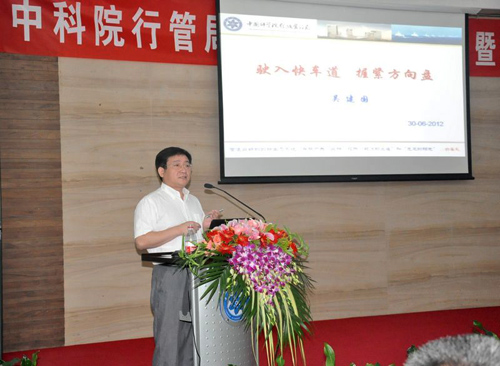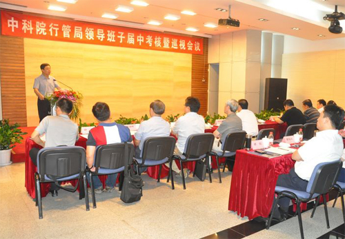 院副秘书长、行管局局长吴建国代表领导班子作了届中述职报告。他以《百舸争流千帆竞 平流缓进稳中赢》为题,全面回顾了过去两年多来班子的履职情况和行管局的发展进程,深入分析了“十二五”后半期的目标与任务、机遇与挑战、对策与措施,热切展望了行管局可持续健康发展的美好未来。他强调,“十二五”时期,我院进入“创新2020”重点跨越阶段,行管局迎来重要的发展机遇期,肩负着更大的责任和使命。全局干部职工一定要继续保持“高效务实、团结奋进”的工作作风,继续发扬为科研后勤事业攻坚克难、勇往直前的献身精神,为助力院科技创新跨越发展、科研后勤支撑保障体系建设作出更大的贡献。