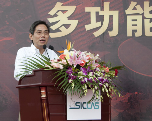施尔畏在致辞中指出,多功能无机材料综合研究基地的建设是硅酸盐所在新的历史时期发展的一个重要标志性事件。经济和企业的转型,要求我们在科研方式、队伍结构与产出形态等方面做出转型,唯此才能符合我国经济社会发展的需求,才能符合科技创新快速发展的态势。我们要努力做到三个“融合”,即研究所和外部创新组织的融合、科学研究和应用的融合、工艺性研究和原始创新研究的融合。因此,应该有一个全新的平台来实现转型。基于研究基地设计的建筑绿色能源集成创新示范展示工程,将把硅酸盐所在绿色能源的研发、应用和示范综合体现出来,通过这个应用示范工程,可以向产业界及社会各界介绍我们的科研成果,努力实现硅酸盐所科技形态的转型。