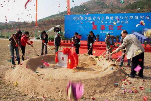 青岛生物能源与过程研究所为全院第一个“3H”公寓奠基。青岛市政府副秘书长王卫平、青岛市科技局副局长许辉、青岛市国土资源局副局长付荣云、青岛市崂山区副区长于鹏,中科院海洋所党委书记王启尧、青岛能源所所长刘会洲等所领导共同参加活动并奠基。