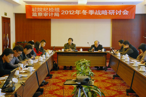 为深入学习贯彻党的十八大精神,进一步加强中科院反腐倡廉建设,11月29至30日,驻院纪检组、监察审计局召开了2012年冬季战略研讨会。中央纪委驻院纪检组组长、院党组成员李志刚出席会议并作重要讲话,驻院纪检组副组长、监察审计局局长李定等组局全体同志参加了会议。