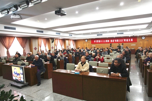 方新首先介绍了党的十八大会议盛况,然后从高举旗帜,走中国特色社会主义道路;转变发展方式,实施创新驱动发展战略;深化科技体制改革,加快建设国家创新体系;改进党的工作,全面提高党的建设科学化水平四个方面进行了阐述,同时结合我院实际谈了学习体会。辅导报告高屋建瓴,主题突出,观点鲜明,理论联系实际,老同志深受启发,增强了学习领会党的十八大精神效果。
