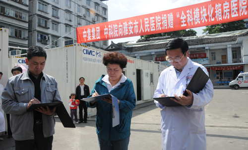 据中科院深圳先进院李司介绍,这批箱房是该院科学院低成本健康项目的产品,由其属下企业“中科强华”为执行科技部“健康非洲”项目定制,正要发往非洲。雅安发生地震后,中集集团与先进院快速启动赈灾机制,双方紧急磋商,临时改为捐赠,并与四川省委、省政府沟通和协调接收机构,落实雅安市人民医院为受赠方。