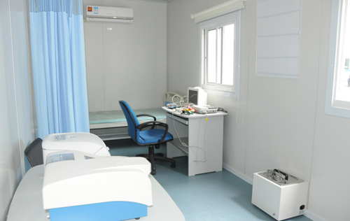 “全科模块化箱房”是由中科院深圳先进院和中集集团联合研制。设有全科工作室、输液室、药房、休息观察室、挂号室、卫生间、废弃物处理室等。在医疗设备的配备上,有B超、血细胞分析仪、监护仪、生化分析仪、心电图机、洗胃机、吸氧机、备用发电机等,基本能够满足一般的医疗诊治需要。