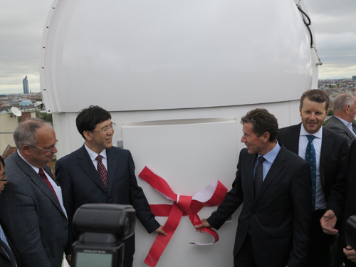 阴和俊与奥科研部部长K. Toechterle共同为维也纳空间量子通信测试站点落成揭幕