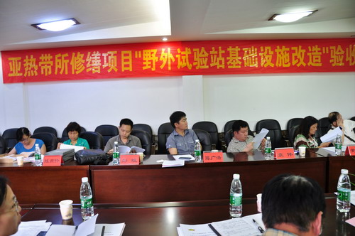 在项目验收会上,亚热带所党委书记李文祥向验收组作了“项目实施工作总结”的汇报。验收组分建安与使用管理、财务、档案三个专业组对项目进行了全方位的细致审查。经过初步核查,验收委员会对该项目各专业给予了肯定,认为该项目档案材料齐全,财务账目清晰准确,达到竣工验收条件。