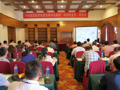 2013年7月22至25日,中科院联想学院第四期科技副职(科技特派员)研修班在昆举办,来自院机关和各研究所的47名科技副职参加了此次研修班。中科院副院长施尔畏、中国科技大学党委书记许武、科技促进发展局局长严庆、昆明分院院长王庆礼、云南省科技厅巡视员李树洁等出席开班典礼并做主题讲座。