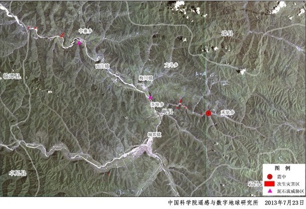 7月22日,甘肃岷县漳县6.6级地震发生后,中科院遥感与数字地球研究所立即启动灾害应急响应,完成了SPOT-4、SPOT-5、THEOS卫星的震区历史数据生产处理,地震当天下午16:13开始实施网络共享,对于灾情评估发挥了重要的基础性作用。截至7月25日16:00,震前卫星数据下载共计5738人次,累计下载量87.79GB。与此同时,提交了THEOS、RADARSAT-2等卫星的紧急数据获取申请,并积极联系国内卫星用户单位,及时获取国内卫星数据。
