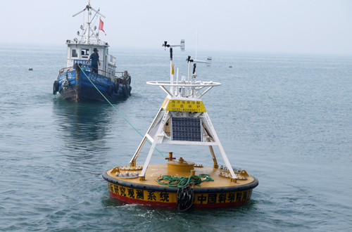 中国近海海洋观测研究网络荣成楮岛观测浮标系统(编号007)是直径为3米的综合观测研究浮标,观测内容包括风速、风向、气温、湿度、气压、能见度、水温、盐度、浊度、叶绿素、溶解氧、波浪和剖面海流等参数,可以对荣成楮岛附近海域的水文、气象及水质等参数进行实时连续监测,通过CDMA和GPRS两种通讯方式每小时向陆基站传输一组数据。自2010年7月布放就位以来,已获取有效连续观测数据几十万组(开始10分钟采集频率),这些数据为该海域的海洋科研、渔业生产、环境气象预报等提供有力支撑。