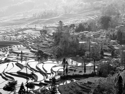 在云南红河州,闵庆文考察了有1300多年历史的哈尼梯田:哈尼人的村寨都建在半山腰,村寨的上方,有茂密的森林作为水源地,村寨的下方是梯田。森林中渗出水流,通过自成一体的灌溉网络通向村庄,再流入梯田,最后再以田为渠流向河谷。“在长期的历史发展中,梯田成了哈尼人赖以生存的物质基地。哈尼梯田的壮观、美丽和梯田建造与维护中的巧夺天工令世人瞩目,而哈尼人的宗教习俗、乡规民约、民居建筑、节日庆典、服饰歌舞、饮食文化等,也无不以梯田为核心,处处渗透出天人合一的梯田生态文化理念。”闵庆文十分感慨。