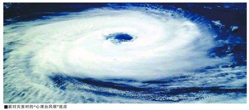 项目组在汶川地震1个月后的调查中发现,随着灾情严重程度的增加,居民对健康和安全的担忧程度反而降低,且非灾区居民的担忧程度高于灾区居民。项目组假“台风眼”这一气象名词,形象地将其研究发现冠名为“心理台风眼”效应,即越接近高风险地点,心理越平静。