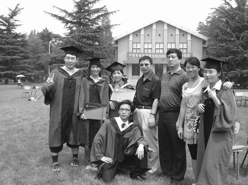 琚宜文教授(右三)与参加学位授式的研究生们在一起。