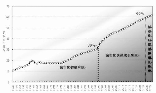 图1:中国城市化进程的阶段性规律与未来发展趋势示意图