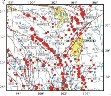 先从汶川地震谈起。汶川地震为什么会发生,网上经常见到的解释为:印度板块与欧亚板块碰撞,造成青藏高原快速隆升和物质向东缓慢流动,在龙门山向东挤压,遇到四川盆地刚性地块阻挡,造成构造应力能量长期积累,最终发生地震。