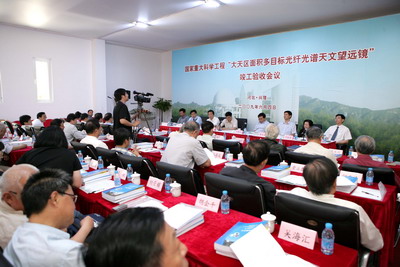 常务副院长、LAMOST工程建设领导小组组长白春礼任主任委员。 LAMOST是我国自主创新设计、在技术上极具挑战性的新型大视场兼备大口径的光学天文望远镜。视场为5度(相近口径的常规天文望远镜视场小于1度),口径大于6米。光学系统由反射改正镜、球面镜和焦面三个部分构成。一次观测最多可同时获得4000个天体光谱。 对天体性状和行为的认识,光谱物理信息含量最大、研究经验和运用技巧积累最多。但是,目前由“成像巡天”记录下的数以百亿计的天体中,只有大约万分之一进行过有缝光谱测量。要进行目前天文研究迫切需要的大规模光谱测量必须兼备两个条件:一是望远镜视场必须足够大;二是望远镜口径也要足够大。 常规望远镜口径大的视场很小,视场大的口径却难以做大。这使得“大视场兼备大口径”成为长期以来天文望远镜技术中的一个难题,也是众多天文学家迫切希望解决的问题。 上世纪九十年代,著名天文学家王绶琯院士和苏定强院士敏锐地觉察到国际天文界对大样本光谱观测的迫切需求,提出了大视场与大口径兼备的天文望远镜新概念及初步方案,经崔向群、褚耀泉、王亚男进一步细化和论证,形成了最后的具体方案。我国天文学家独创的LAMOST这种新型望远镜,被国际上誉为“地面大视场大口径望远镜的最佳方案”——创造性地将40多米长的镜筒固定,并用主动光学技术实时产生非球面面形不断变化的高精度镜面——突破了半个世纪以来大口径和大视场难以兼备的瓶颈。 但是为了实现这一创新思想,必须攻克大量世界级技术难题,在世界上:首次在一块大镜面上同时应用薄变形镜面和拼接镜面主动光学技术(控制镜面面形精度达发丝的数千分之一);首次实现六角形的主动可变形镜;首次在一个光学系统中同时采用两块大口径拼接镜面;首次应用4000根光纤定位技术(同类设备目前仅640根)。这些都是开世界天文技术历史之先河。此外,8米高精度大型地平式跟踪机架、多目标光纤光谱技术、海量数据处理等均为世界前沿技术,掌握的国家屈指可数。面对如此多的高难度技术挑战,曾有人担心LAMOST很难实现。但工程全体人员在工程领导小组组长白春礼院士的领导下,在总工程师崔向群研究员的带领下迎难而上,攻克所有技术难关,终于在2008年8月胜利建成了这一宏伟的大科学工程。 LAMOST项目的研制成功得到了国内外专家的高度评价。国际著名天文学家、芝加哥大学的D. York 教授在接受美国《科学》杂志采访时说:“由于LAMOST令人敬畏的技术挑战,并不是每个中国科学家都倾心于她,但我是LAMOST的粉丝”。主动光学发明人、国际著名天文光学专家R. Wilson评价:“LAMOST包括了望远镜技术的所有方面……,她的建成,将中国望远镜研制技术推到了世界前沿的顶峰”,“LAMOST的成功,不但是中国科技界的胜利,也是整个国际天文界的胜利”。 验收专家认为,LAMOST全体人员全面优质完成了工程建设任务,其中望远镜光学像质、跟踪指向精度显著优于设计指标,表明LAMOST已具备甚至超过了预期能力,成为目前国际上口径最大的大视场望远镜和光谱获取率最高的望远镜。 LAMOST以其中国原创的新概念和新方法,极具创新的技术和工艺,代表了我国大型光学精密仪器的最高水平,是我国科技领域自主创新的典范。她将使人类观测天体光谱的数目提高一个数量级(至千万量级),使我国在该领域处于国际领先地位。将对宇宙起源、星系形成与演化、银河系结构、恒星形成与演化等的研究做出重大贡献。 LAMOST的建设为我国科研、生产和空间技术的发展提供了人才和高技术储备,并为我国研制巨型望远镜奠定了坚实的基础,使我国跻身于国际天文技术前沿,成为世界上少数几个具备自主研制巨型望远镜能力的国家之一。 附: 白春礼在“大天区面积多目标光纤光谱望远镜”项目国家验收会上的讲话