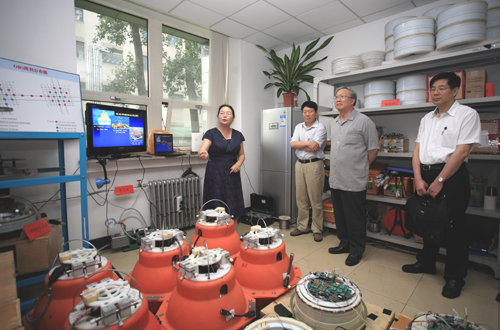 路甬祥(右二)参观研究所自主研发的海底地震仪