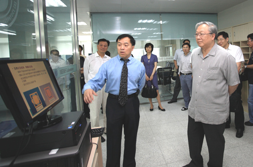 路甬祥一行考察了数字检波器实验室、生物磁学实验室、海底地震仪研制实验室、离子探针实验室、气体质谱实验室和纳米探针实验室,听取了朱日祥所长关于“观念创新带动研究所跨越发展”的汇报,围绕研究所实施“创新2020”,与科研人员进行了座谈交流。