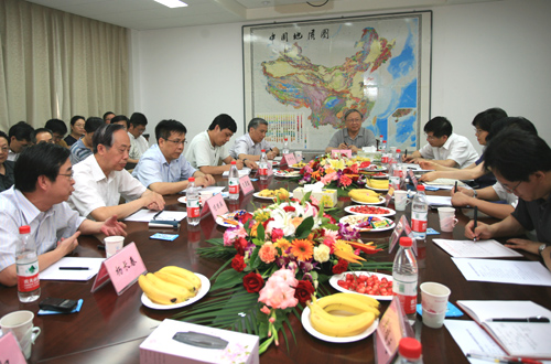 院长路甬祥、副院长丁仲礼到地质与地球物理研究所调研。党组成员、秘书长邓麦村,副秘书长兼规划战略局局长潘教峰等陪同。