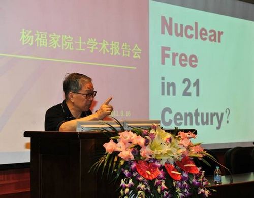 一个多小时的报告,使在座的听众都深受鼓舞,受益匪浅。面对大家的踊跃提问,全程站着做报告的杨福家全部耐心解答。当研究生问及中国对包括核能在内的新能源发展战略有何展望时,杨福家满怀激情地说,发展核能是符合目前中国国情的一个战略需要,但是核能的发展必须在国家的协调下建立统一指挥统一领导的研究、建设和应急响应机构。杨福家以日本福岛核电站的安全问题、德国核能发展战略的改变、美国等大国对核能源的利用等事实为例对问题进行了系统的论述,他的旁征博引和生动讲解获得了阵阵掌声。