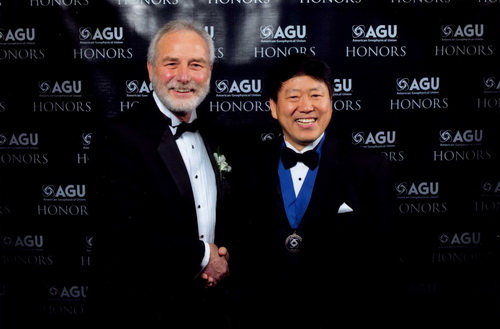 朱日祥(右)与AGU主席