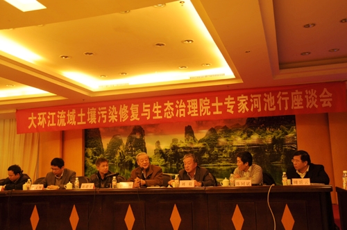 孙鸿烈院士一行通过对环江农田污染和土壤修复进展的实地考察,从基础研究和产业化的角度给予具体指导,这些意见和建议将会推动我国重金属污染土壤修复工作的稳步发展。