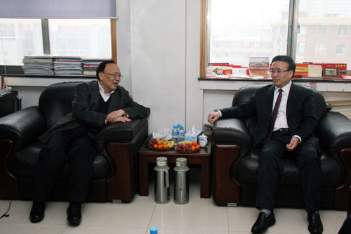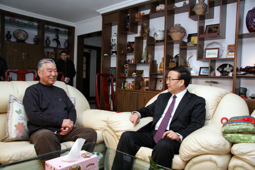 随后,袁占亭一行又来到中科院兰州化学物理研究所看望了薛群基院士。袁占亭等人关切询问了薛群基院士的身体和起居情况,祝愿他新春愉快、健康如意。对薛群基院士扎根西部、勇攀科技高峰的精神和在科技进步中作出的贡献表示由衷敬佩和感谢,并就兰州市大气污染治理、兰州分院科研工作人员住房需求等问题听取了意见与建议。薛群基院士对兰州市政府、兰州分院长期以来给予的关心表示感谢,并表示将继续努力,发挥所长,为培养更多高素质的科技人才、为区域经济社会发展、为建设创新型国家再立新功。