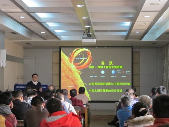 报告以丰富的图表、大量的数据,用通俗易懂、深入浅出的语言,阐明了太阳系探测的五大主要科学问题,即太阳系生命信息探寻与生命起源研究、类地行星比较研究与太阳系形成与演化、太阳和小天体活动对地球的灾害性影响、地外资源能源与环境的开发利用以支持人类社会可持续发展、再造一个地球等。欧阳自远指出,解决上述重大基础科学问题及应用基础科学问题是支撑深空探测活动不断发展的根本出发点和落脚点,在确定深空探测的主要科学问题时,必须结合科学未来的发展前景、国家战略需求以及现实的技术能力进行综合考虑。欧阳自远还简要介绍了我国太阳系探测的初步设想,主要是我国2030年太阳系探测的总体科学目标,在火星、太阳、小行星、金星和木星等探测方面的初步设想等。