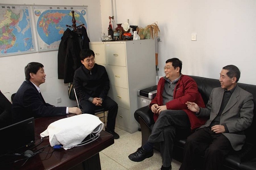 薛勇彪向李家洋简要汇报了研究所2013年度的工作进展情况;李家洋则就人才队伍建设、前沿科学研究部署、科研基地建设等工作与所领导进行了深入交流,共同描绘出了一幅贯彻落实党的十八大精神、践行科学发展观、落实“一三五”战略规划的遗传发育所和谐奋进新蓝图。