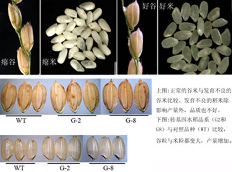 上海生命科学院植物生理生态研究所植物分子遗传国家重点实验室何祖华研究员领衔的课题组通过在筛选水稻遗传资源的基础上,寻找灌浆与千粒重的突变体。通过构建遗传定位群体,他们克隆了灌浆基因GIF1,其编码一个蔗糖转化酶。发现该基因特异在发育籽粒的背部维管束中表达,表明这个区域是种子灌浆过程中蔗糖卸载的重要场所。从而分离了控制水稻籽粒发育中蔗糖运输卸载和灌浆的关键功能基因。通过一系列分子遗传研究,证明GIF1是水稻驯化过程中起重要作用的一个基因。人工选择使现代栽培稻的GIF1基因有严格的组织特异性,有利于籽粒灌浆,使水稻产量提高,而野生稻的基因表达部位不一样,不利于籽粒灌浆而降低产量。更重要的发现是,当把栽培稻GIF1基因再转化水稻品种,转基因植株能够显著促进籽粒灌浆和千粒重,证明一个驯化的基因通过适当的基因表达调控,仍然可以提高作物的经济性状。这为水稻高产分子设计育种提供了一种新的选择。相关研究论文发表在Nature Genetics上。