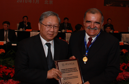 路甬祥为艾伯特•赫尔曼•格哈德•伯纳教授颁奖(中科院网站 段煦/摄)
