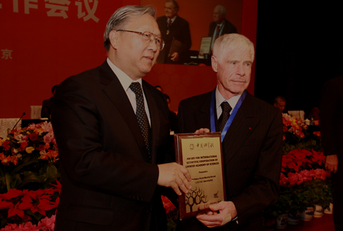 路甬祥为罗格•博奈教授颁奖(中科院网站 段煦/摄)