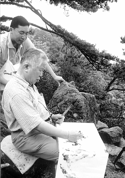 2002年,吴良镛教授在黄山作画。(资料照片)