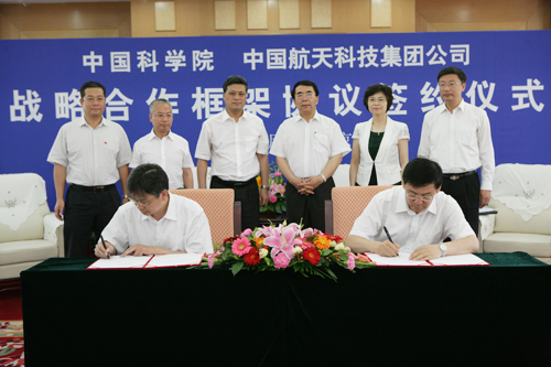 院长、党组书记白春礼和中国航天科技集团公司党组书记、总经理马兴瑞等领导出席签约仪式。中科院副院长阴和俊和航天科技集团公司副总经理袁洁代表双方签署协议。