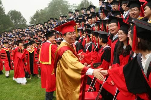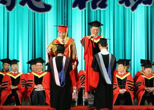 典礼上,中科院研究生院管理学院院长、全国人大常委会原副委员长成思危,研究生院常务副院长吴岳良,研究生院学位评定委员会委员及导师代表等,共同为近700名毕业生代表扶正流苏。