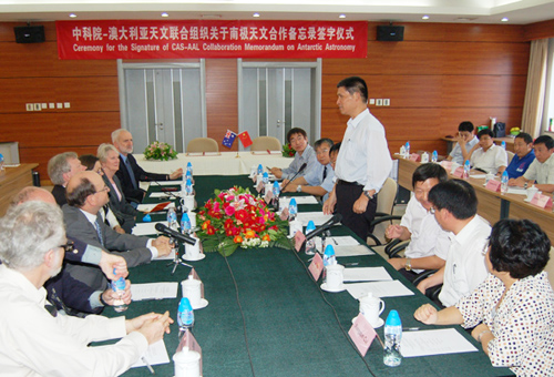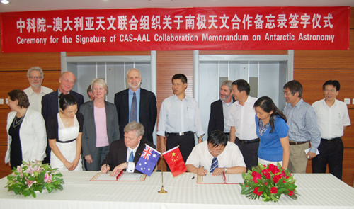 中科院基础科学局局长刘鸣华与Schmidt分别代表双方签署了谅解备忘录。根据该谅解备忘录,中科院与澳大利亚天文联合组织将在南极天文领域开展合作,在未来四年内共同利用中国南极昆仑站和澳大利亚的天文设备进行天文学研究。