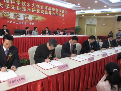 在签字仪式上,举行了中科大先进技术研究院企业导师受聘仪式;合肥市政府和中国科技大学签署了全面战略合作协议;中科大先进技术研究院与战略合作单位签署了协议。讯飞集团捐资1000万元,设立了“讯飞优秀青年人才基金”。