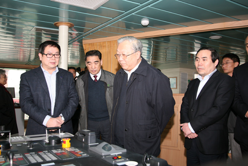 11月22日,全国人大常委会副委员长路甬祥考察了“科学”号海洋科学综合考察船。