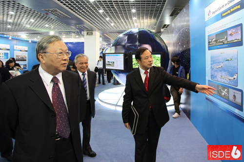 院长路甬祥,国际数字地球学会科学委员会主席徐冠华,第六届国际数字地球会议(ISDE6)组委会主席郭华东及国际数字地球学会全体执委。国家遥感中心主任张国成,北京市经济和信息化委员会副主任俞慈声,徕卡测量系统地理信息部亚太总经理Ruediger Wagner,北京视宝(SPOT)卫星图像有限公司经理Hugues PAVIE以及PASCO公司董事长佐藤充等出席开幕式。