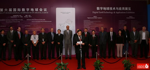院长路甬祥,国际数字地球学会科学委员会主席徐冠华,第六届国际数字地球会议(ISDE6)组委会主席郭华东及国际数字地球学会全体执委。国家遥感中心主任张国成,北京市经济和信息化委员会副主任俞慈声,徕卡测量系统地理信息部亚太总经理Ruediger Wagner,北京视宝(SPOT)卫星图像有限公司经理Hugues PAVIE以及PASCO公司董事长佐藤充等出席开幕式。