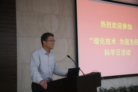 汪鹏飞副所长在开幕式上向来访公众介绍理化所概况