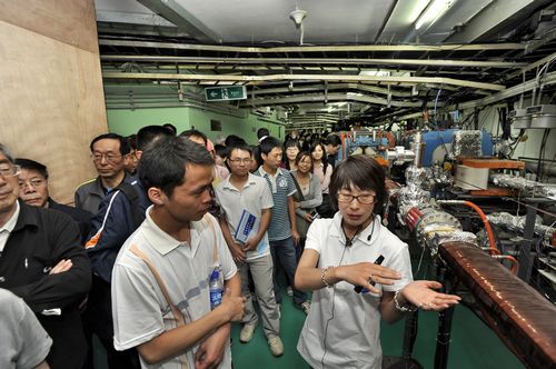 研究生院,中科院各兄弟院所,原子能院,中国石油大学,中国农业大学,北京科技大学物理系,中关村中学,永定路中学等各个研究所、大学、中学的老师和同学以及普通公众1000余人到达我所。由于到达时间非常集中,协调小组及时采取措施,在报告厅坐满后,分两路引导部分公众先去参观实验区,使得人流迅速疏散,活动有序进行。