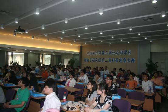 在微电子所第二届科普创意大赛的决赛环节,八名参赛选手分别以视频,幻灯片、实物模型、科研成果展示等形式,深入浅出地向参观者讲解了微电子行业的基础知识和基本概念,激发了大家对微电子行业的关注。“你相信有一天地球上每个物体都会有自己的“身份”吗?”,“你相信微电子技术能把大象装进冰箱吗?”,“什么样的通讯技术能让人类与大自然对话呢?”,“你知道功能强大的超级计算机,它的幕后英雄是谁吗?”这些题材新颖,生动活泼的科普作品,深深吸引了参观者。