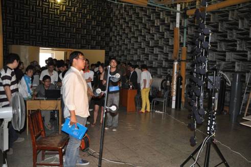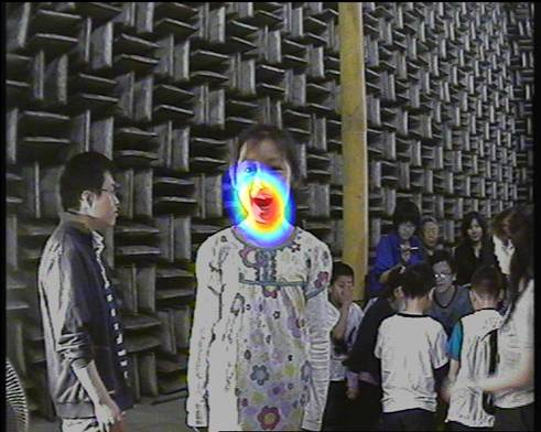 在开放日中,小学生们也对声相仪产生了极大的兴趣,争先恐后参加演示,他们从声像图上看到说话时嘴唇附近的声音最强,知道了声音是从哪里发出来的,最后还将自己说话时的声像图保存起来留作纪念。有的小朋友还说有了声相仪,南郭先生就不能滥竽充数了。