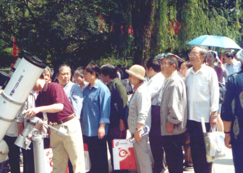 国家天文台组织群众在科普教育基地观测太阳活动。