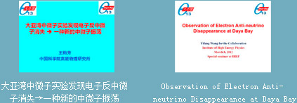 2012年3月8日,大亚湾中微子实验国际合作组在北京宣布,大亚湾中微子实验发现了一种新的中微子振荡,并测量到其振荡几率。该实验达到了前所未有的精度,测得第三种中微子振荡模式的振荡幅度为9.2%,误差为1.7%,无振荡的可能性只有千万分之一。全世界的粒子物理学家通过网络直播得知了这一研究结果。