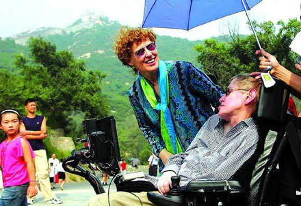 霍金来到了17年前曾经登过的八达岭长城脚下。孰料一波三折,按最初的安排,准备派人把坐在轮椅上的霍金抬上长城,但由于长城陡峭,霍金夫人认为这样不太安全,这种方案因此被否决,霍金坐在轮椅上,恋恋不舍准备离去。
