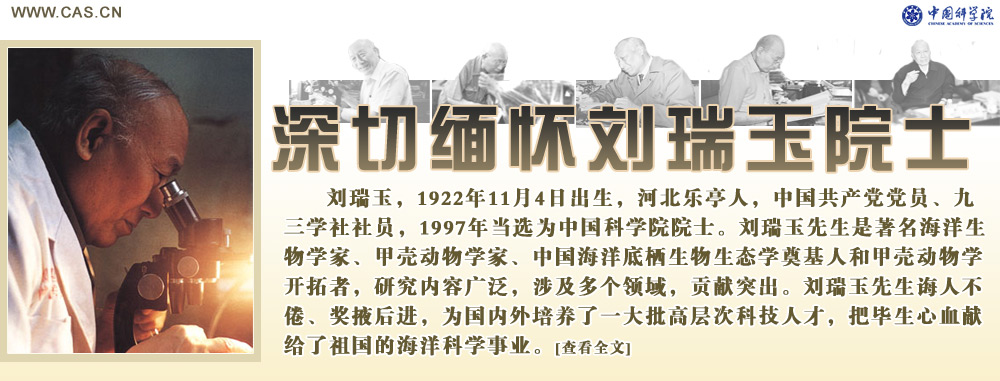 刘瑞玉先生是著名海洋生物学家、甲壳动物学家、中国海洋底栖生物生态学奠基人和甲壳动物学开拓者,研究内容广泛,涉及多个领域,贡献突出。从事海洋科教工作65年来,共著论文、专著两百多篇(部),获得国内外多个奖项。