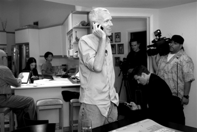 10月10日,清华大学客座教授、诺贝尔化学奖得主之一科比尔卡在美国的家中接听祝贺电话。