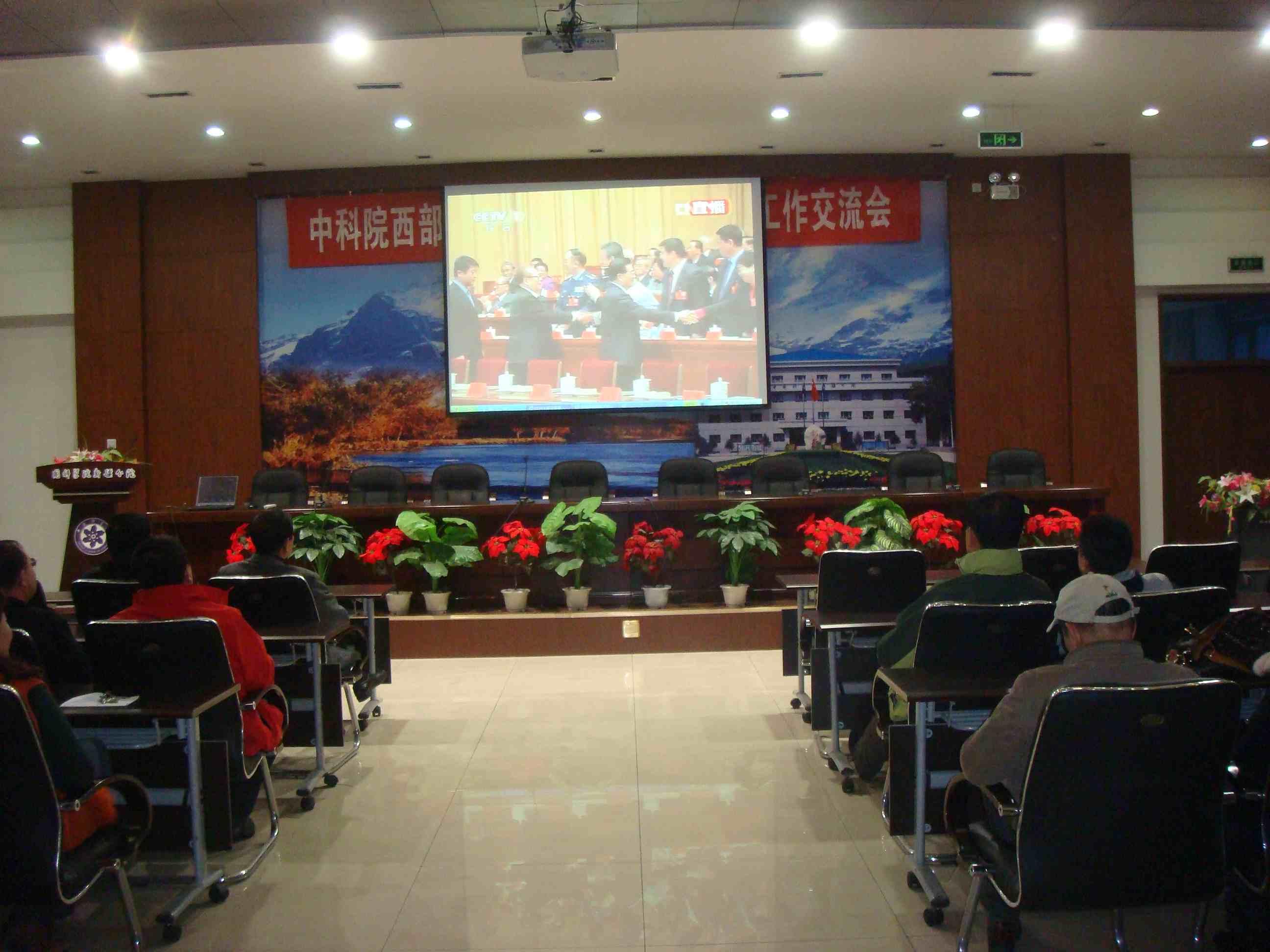 中科院新疆分院组织广大党员干部和职工收听收看党的十八大开幕式和胡锦涛总书记的报告。上午9点钟不到,分院党组书记及广大党员、干部职工就已经坐在分院四楼报告厅,静待着十八大的开幕,随着国歌声响起,会议室内的所有人全体起立,唱国歌,随后观看了胡锦涛总书记大会报告。